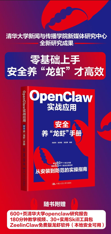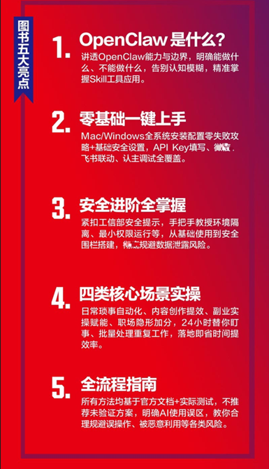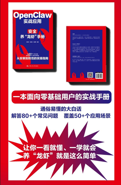 请大家转发本期《4月免费论坛—从中国到全球:智能工厂的下一阶段》活动信息至朋友圈,集齐60个赞,并且在后台截图给我们,我们会根据后台发送的时间,选择前5名,在活动截至后统一寄出书籍给大家,本月赠书《OPENCLAW实战应用:安全养“龙虾”手册》!!!