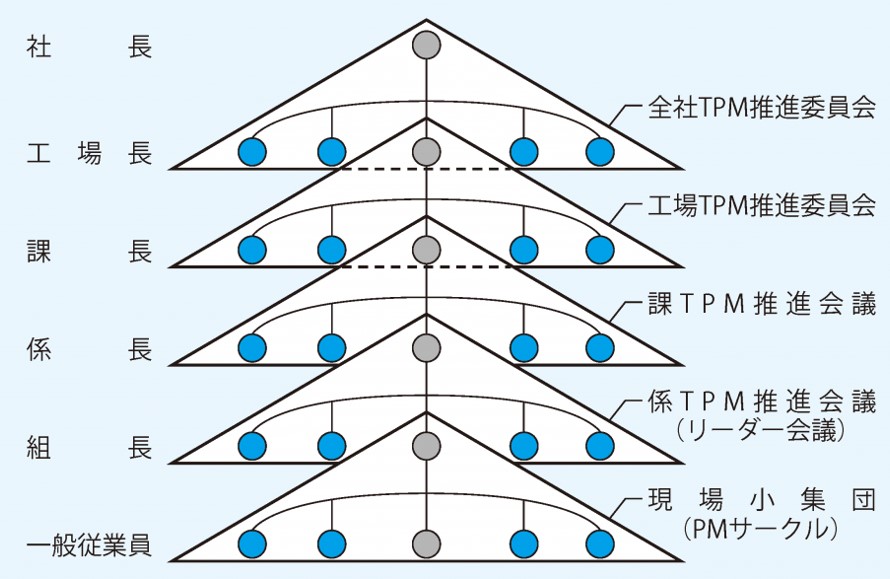 但是,在TPM中,组织了层层架构的小组组织,以便在从高层到第一线的所有人的参与下,为每个级别开展小组活动。