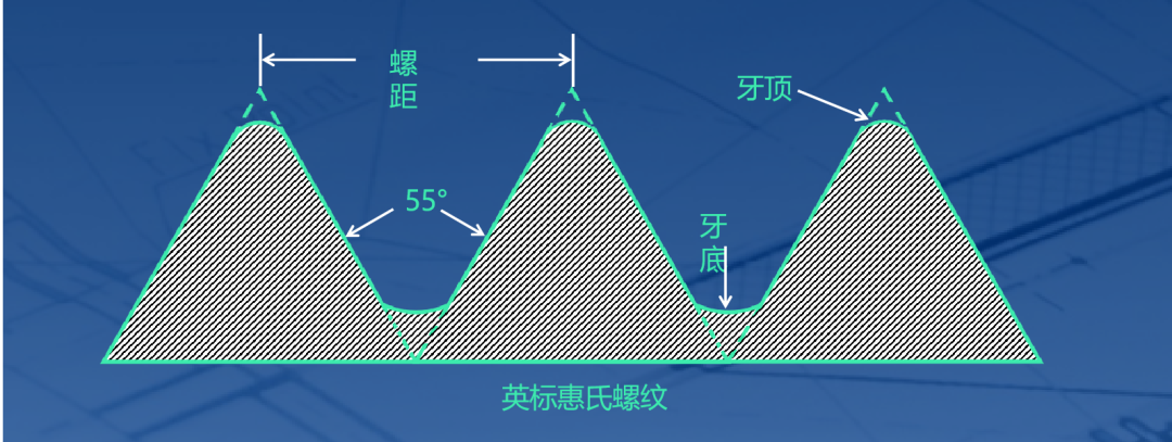 起源于英国,1841年英国公民约瑟夫·惠特沃斯发明这种螺纹,故此得名。这种螺纹的螺纹角度为55°,牙顶和牙底都是圆弧形,也被称为B.S.W螺纹。