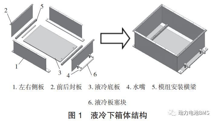 如图 1 所示,液冷箱体由 6 种零件共计 12 个零件拼焊而成。