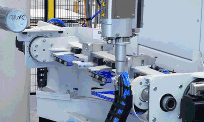 通过自动激光焊接,完成极柱与连接片的连接,实现电池串并联。